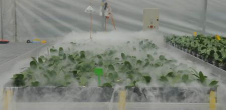 ZHAW is developing and testing a new air distribution system for the green house . The air is fed from the absorber directly below the crop. The air in contact to the crop is conditioned instead the air of the entire green house. Beside a huge saving in the energy, this system allows to create different clima zones in same green house room.