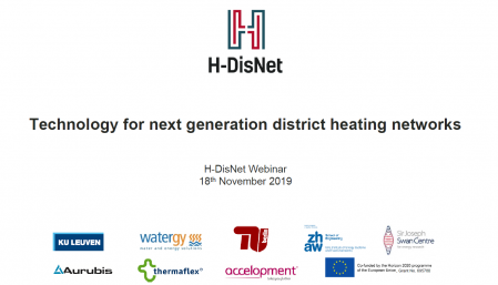 The first webinar took place in November 2019. The H-DisNet technology has been presented in details with focus in Humidity Control, Heating and Cooling, Smart Grid Applications and Market and Stakeholders,